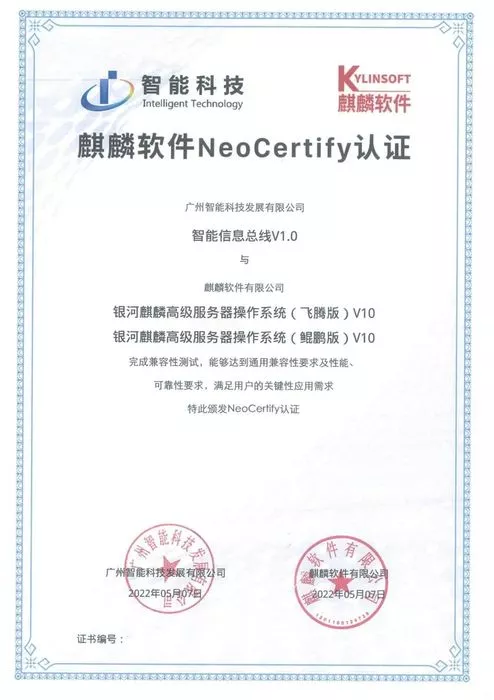智能数据资源目录系统、智能信息总线通过麒麟软件Neo Certify认证!